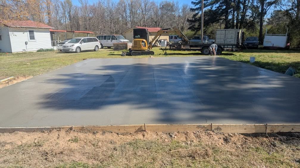 We can setup, pour and finish your concrete foundation for any Garage or Metal Building.